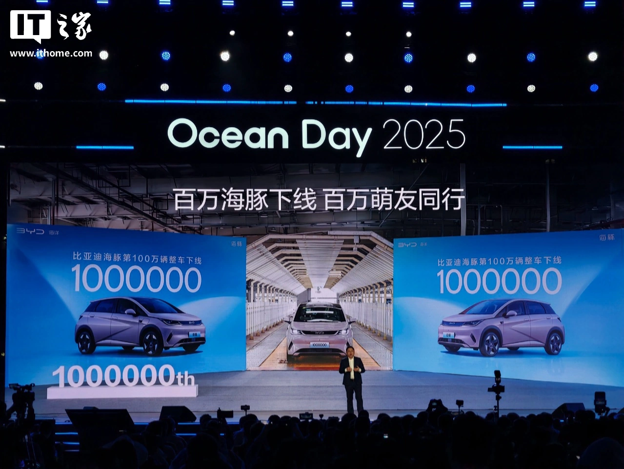 IT之家12月15日消息,在今晚的“奔涌2025”比亚迪(002594)海洋四周年Ocean Day用户盛典活动中,比亚迪第100万辆海豚正式下线。根据介绍,新车也是最快达成国内A0级市场百万销量的车型,连续3年位居国内A0级市场销量第一,并在2023年实现连续10个月销量突破3万辆。