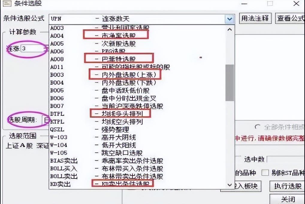 剔除不符合条件的个股,这是条件选股,根据你自身的牛股标准再度对股票技术性的进一步筛选,把认为符合条件的保留,不符合条件的剔除自选;