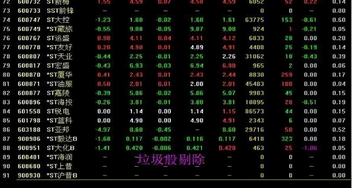 首先最为明显的就是被戴帽的ST股,存在退市风险股,91只垃圾股剔除,