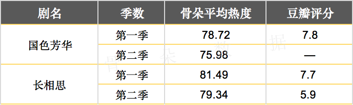 从2025年播出的《国色芳华》和《锦绣芳华》来看,同一个故事,相隔半年,却是完全不同的热度表现。《国色芳华》作为开年古装剧,以78.72的骨朵热度领跑全年的古装剧,且创下7.8的豆瓣高分,可谓是热度和口碑双丰收。而相隔半年,《锦绣芳华》的骨朵平均热度为75.98,热度下降明显。因此,将一个故事切开,简单地分季播出,两季表现可能大不相同。