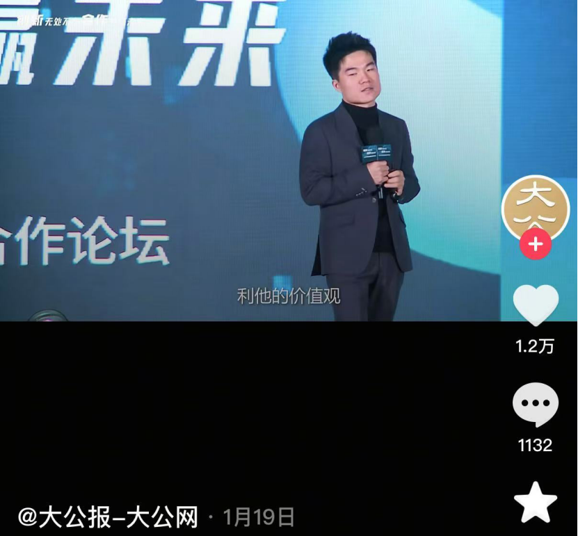 “利他”是董宇辉经常挂在嘴边的价值观。在抖音电商作者盛典大会时,董宇辉提到了利他,他说“怀利他之心,行利他之事”;今年1月,与辉同行成立一周年之际,董宇辉给300多位员工发布的一封信中再次提到“利他”,这是与辉同行的价值观之一。